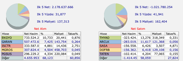 Bankanın gün içinde en fazla alım ve satım yaptığı hisseler şu şekilde sıralandı: