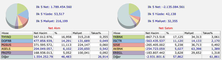 Bankanın gün içinde en fazla alım ve satım yaptığı hisseler şu şekilde sıralandı: