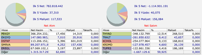Günün en dikkat çeken işlemlerinden biri de ABD merkezli yatırım bankası Bank of America'nın (BofA) gerçekleştirdiği hacim bazlı alım ve satışlar oldu. Bankanın gün içinde en fazla alım ve satım yaptığı hisseler şu şekilde sıralandı: