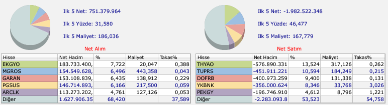 Günün en dikkat çeken işlemlerinden biri de ABD merkezli yatırım bankası Bank of America'nın (BofA) gerçekleştirdiği hacim bazlı alım ve satışlar oldu. Bankanın gün içinde en fazla alım ve satım yaptığı hisseler şu şekilde sıralandı: