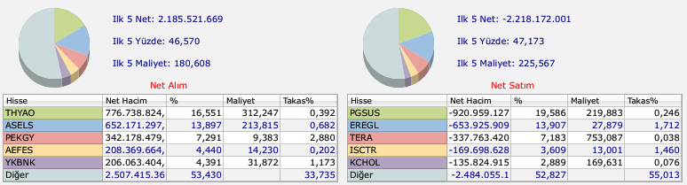 Bankanın gün içinde en fazla alım ve satım yaptığı hisseler şu şekilde sıralandı: