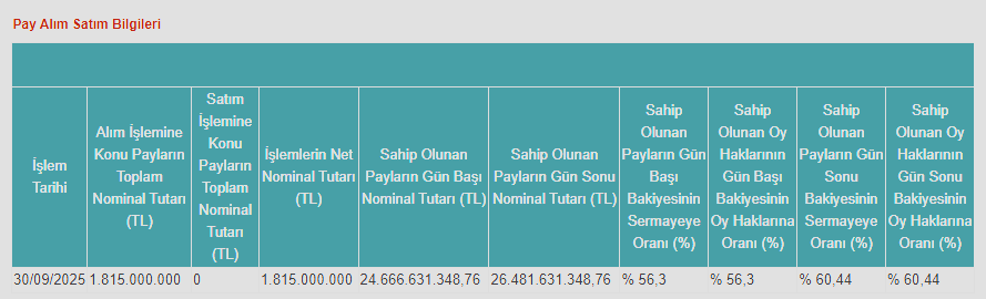 30 Eylül 2025 tarihinde gerçekleştirilen işlemde, Erdemoğlu Holding SASA paylarından 1 milyar 815 milyon adet (6,2 milyar TL) hisseyi 3,45 TL fiyattan satın aldı. Bu alımla birlikte holdingin SASA’daki sermaye ve oy hakları oranı %60,44’e yükseldi.